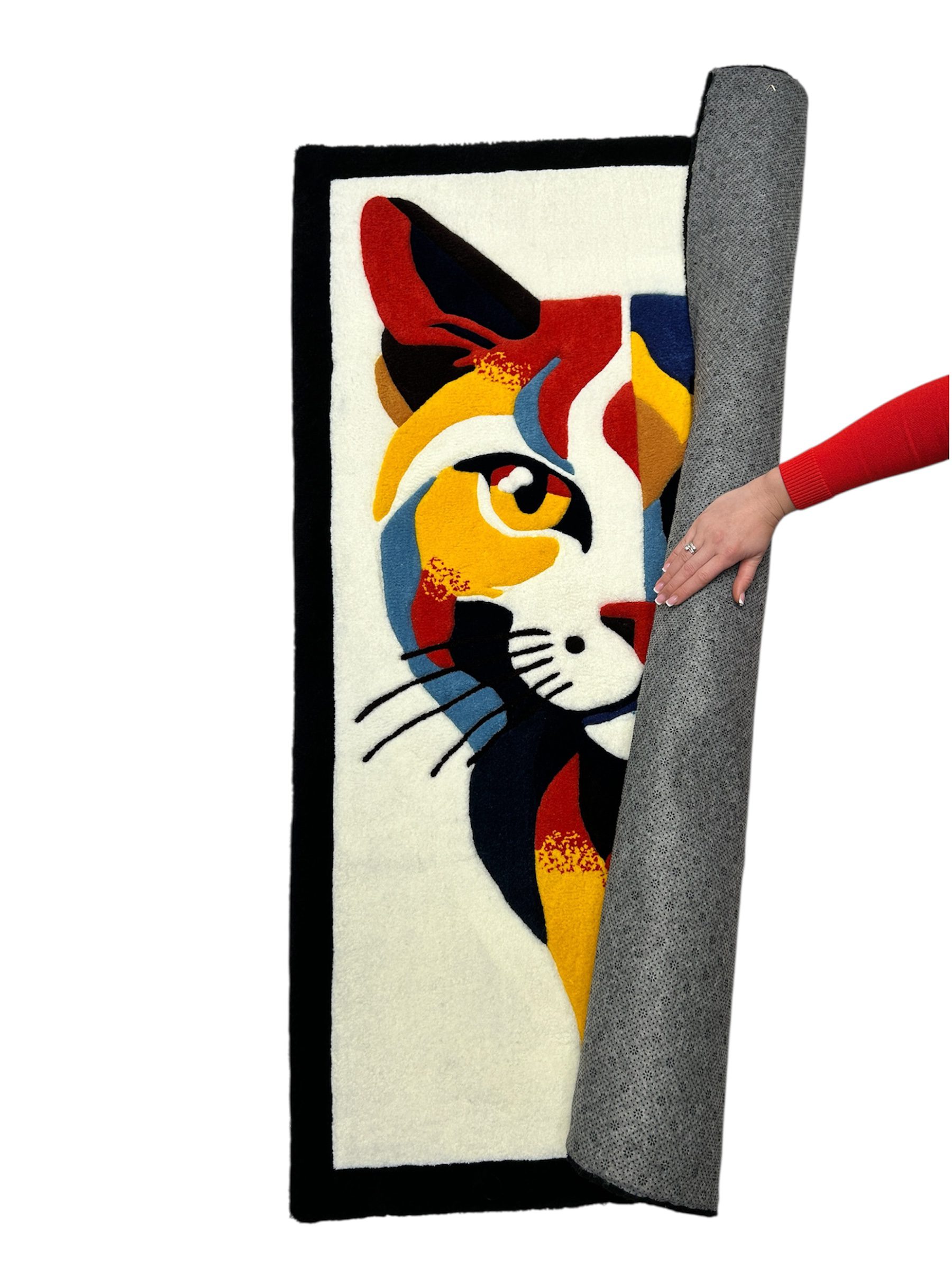 In addition, this rug can be customized to your vision. You may choose the size, adjust the colors, or adapt the design to match your interior. Many clients even personalize details to reflect their own cat. Every customization keeps the same high standard and handmade quality.