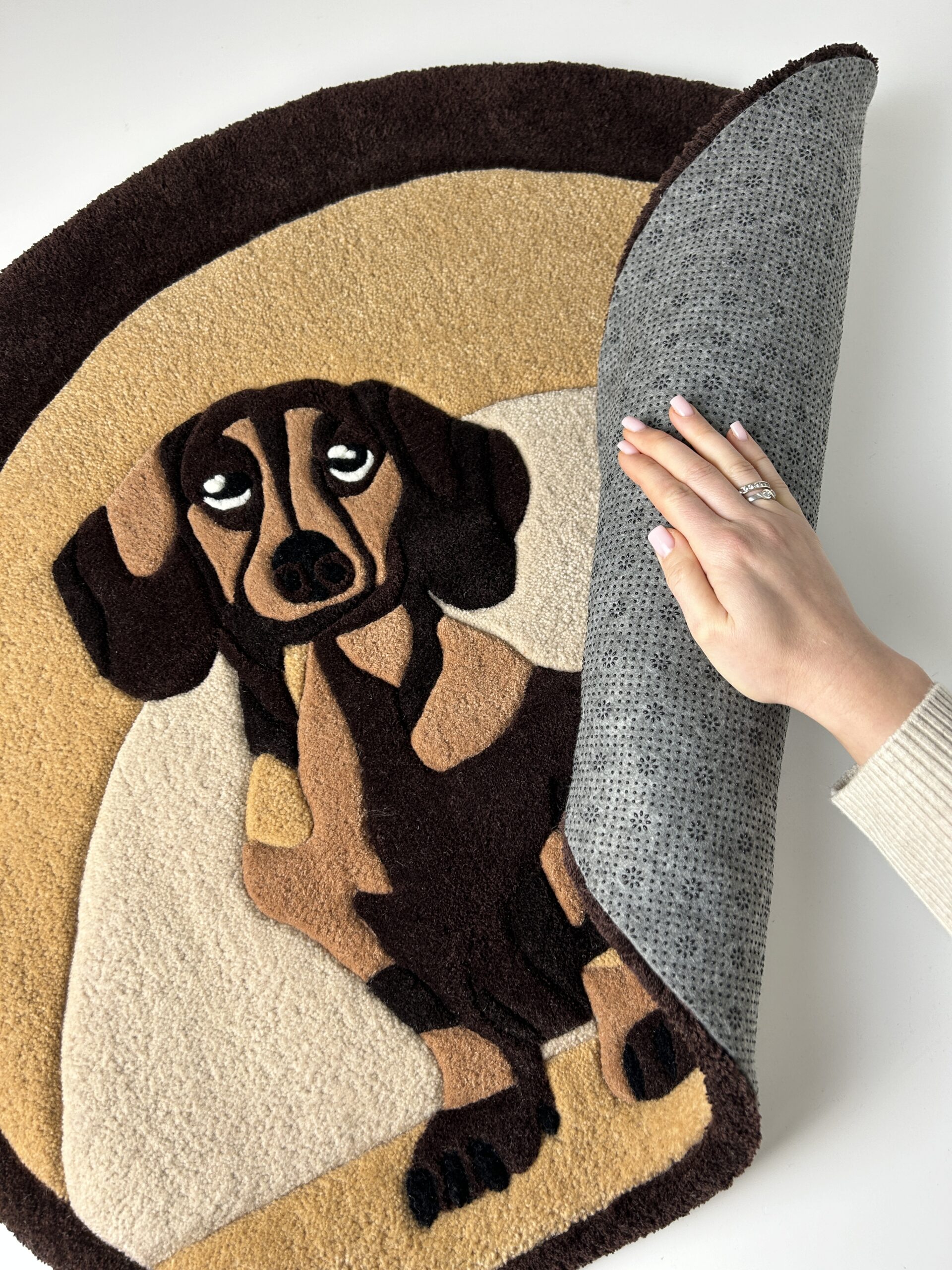 From a practical point of view, this rug is designed for real life. It is soft, visually striking, and made to last. At the same time, it brings emotional value—especially for dachshund owners or anyone who loves unique handmade decor.
