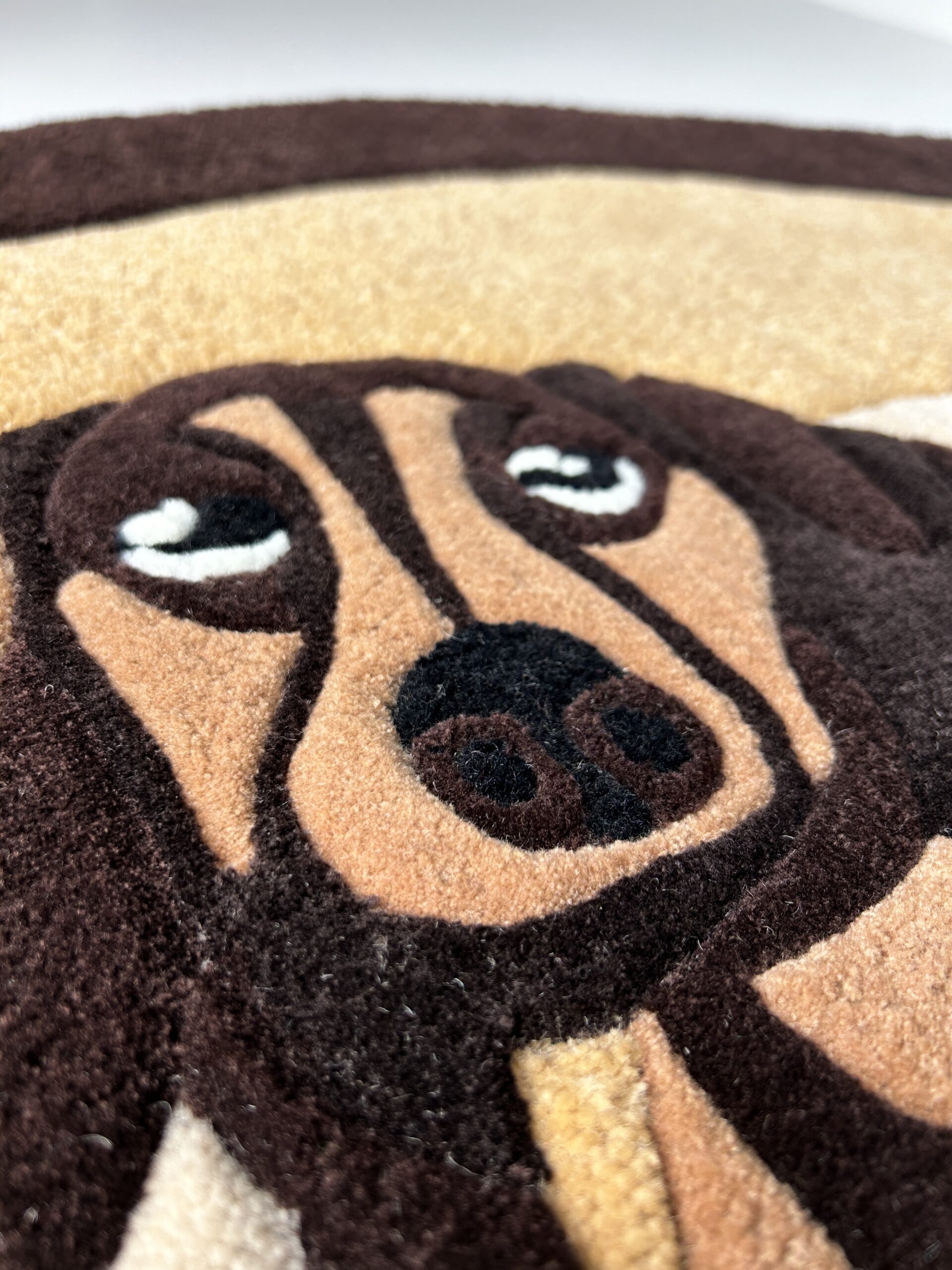 Each rug is tufted by hand using a carefully balanced mix of acrylic and wool yarn. Because of this combination, the rug feels soft and pleasant underfoot, yet stays durable and easy to maintain. Wool adds natural warmth and texture, while acrylic helps the colors stay vibrant over time. As a result, the dachshund design looks rich, defined, and full of life from every angle.