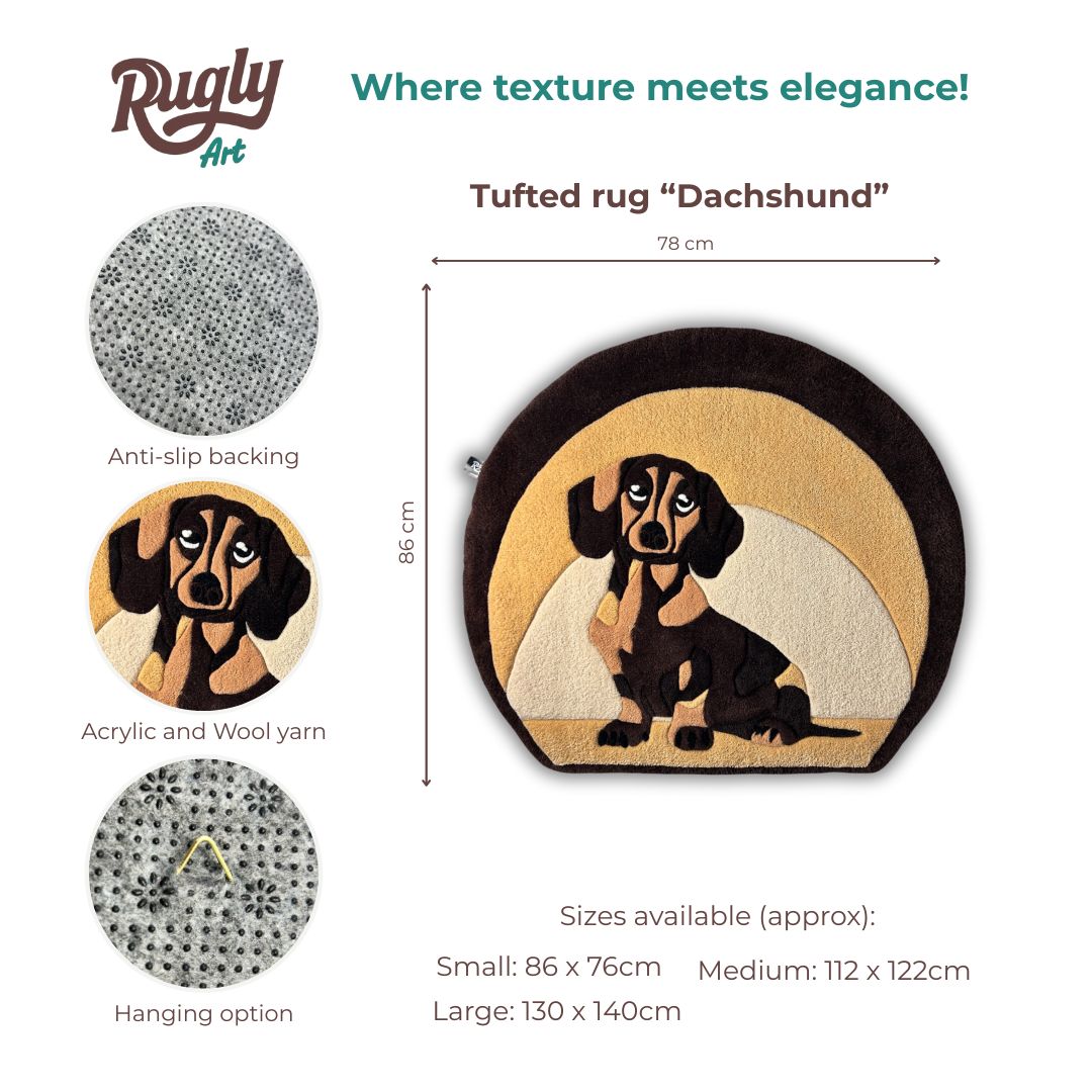 Features of handmade tufted dachshund rug: